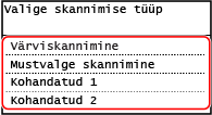 [Avamenüü] kuvaKuvatakse skannimistüübi valikukuva.