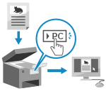 olevale kiirklahvile registreeritud sätete kohaselt salvestatakse skannitud andmed varem määratud arvutisse.![]() | Saate skannida originaali ja salvestada skannitud andmed seadmega ühendatud arvutisse. Peate ainult seadmega töötama. [Avamenüü] kuval või juhtpaneelil olevale kiirklahvile registreeritud sätete kohaselt salvestatakse skannitud andmed varem määratud arvutisse. |