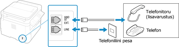 Ühendage kaasasolev telefonijuhe seadme telefoniliini pessa (LINE) ja seejärel telefoniliini seinapistikupessa.