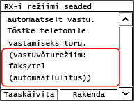 Pärast sõnumi [Seaded on rakendatud.] ilmumist kuvatakse vastuvõturežiimi sätete ekraan.