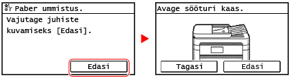 Ärge kasutage jõudu kinnikiilunud paberi seadmest eemaldamisel.Jõuga paberi eemaldamine võib põhjustada vigastusi või kahjustada seadme osi. Kui te ei saa paberit eemaldada, pöörduge oma edasimüüja või hooldusesindaja poole. Kui probleem ei kao Kui kõik paberiummistused on kõrvaldatudVõtke käed kohe seadmest ära, et teie riided või käed ei jääks rullide vahele. |