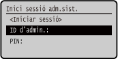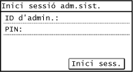 Si l'ID d'administrador del sistema està definit, apareixerà la pantalla d'inici de sessió per a les operacions que exigeixin privilegis d'administrador. Introduïu l'ID i el PIN d'administrador del sistema per iniciar la sessió.