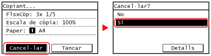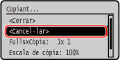 Seguiu les instruccions a la pantalla per cancel·lar una operació de còpia.