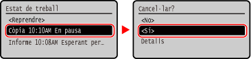 Si apareix la pantalla de llista de tasques, seleccioneu la tasca que vulgueu cancel·lar, seleccioneu [<Sí>] i premeu