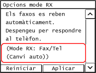 S'apliquen les opcions configurades a la Guia de configuració del fax i el tipus de línia telefònica es configura automàticament.