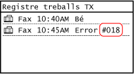 Si no es pot imprimir, o no es poden enviar o rebre dades llegides o un fax, o es produeix un altre error, es mostra un codi d'error (número de tres dígits que comença per "#") a l'informe o al registre de treballs.