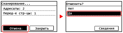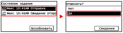 Отменить отправку факса можно, выполнив приведенные на экране инструкции.