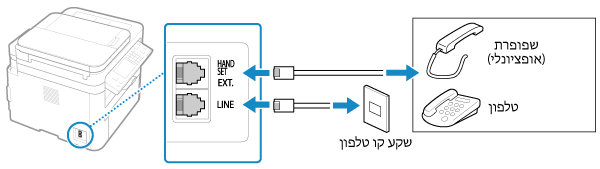 בעת חיבור טלפון עם פונקצית פקס, הקפד להשבית את הגדרת הקבלה האוטומטית של פקסים בטלפון.
