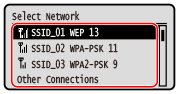 כדי לציין שיטת אימות או הצפנה אחרת, השתמש בשיטת ההגדרה הידנית כדי להתחבר. חיבור לרשת LAN אלחוטית על ידי הגדרת הפרטים (שיטת הגדרה ידנית)