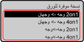 إذا كنت تريد توفير الورق عند العمل على عدة مستندات أصلية، فاستخدم وظيفة توفير الورق. يمكنك إجراء نسخ N على 1 ونسخ على الوجهين في نفس الوقت من شاشة [الرئيسية] أو