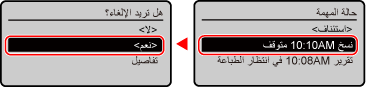 في حالة عرض قائمة المهام، حدد المهمة المطلوب إلغاؤها، وحدد [<نعم>] واضغط على