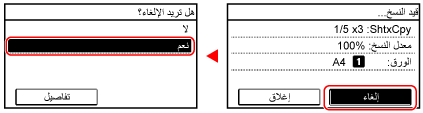 اتبع التعليمات الظاهرة على الشاشة لإلغاء عملية النسخ.