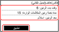 عيّن وقت الرنين والإجراء عند استلام فاكس، واضغط على [تطبيق].