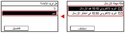 في حالة عرض قائمة المهام، حدد المهمة المطلوب إلغاؤها، واضغط على [نعم].