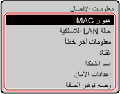 عرض عنوان MAC ومعلومات الاتصال لشبكة LAN اللاسلكية