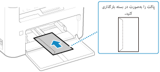 فقط در طرف روی پاکتهای نامه (طرف بدون چسب) میتوان چاپ کرد. هنگام بارگذاری پاکتهای نامه، به جهت و سمتی که رو به بالا است توجه کنید.