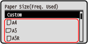 وقتی اندازههای کاغذ غیراستاندارد پرکاربرد ثبت شده باشند، اندازه ثبت شده به عنوان اندازه کاغذ نشان داده میشود. ثبت کاغذ اندازه غیراستاندارد (اندازه سفارشی)