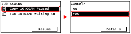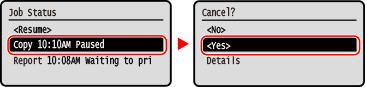 اگر صفحه فهرست کار نمایش داده شد، کاری را که میخواهید لغو شود انتخاب کنید، و [<Yes>] را انتخاب کنید و