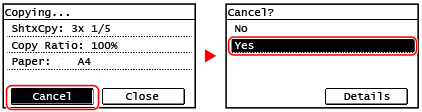 را در پنل کنترل فشار دهید و سپس [<Yes>] را انتخاب کنید و