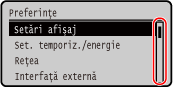 pentru a derula ecranul în direcția apăsării. Elementul selectat este inversat.