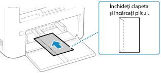 Introduceți plicurile nr. 10 (COM10), Monarch, ISO-C5 sau DL din partea scurtă cu partea din față (fără adeziv) orientată în sus. Introduceți plicul cu clapeta închisă și pe partea stângă.