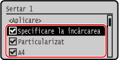 Formatele de hârtie ale căror casete de selectare sunt debifate nu sunt afișate pe ecranul cu setările hârtiei.