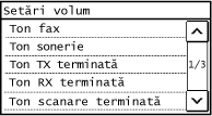 [Ton fax] / [Ton sonerie] / [Ton TX terminată] / [Ton RX terminată] / [Ton scanare terminată]