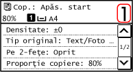 * Când utilizați funcția Copie pașaport pentru a efectua copii, raportul de copiere este setat automat în funcție de formatul de hârtie utilizat la copiere și de numărul de pașapoarte care se combină. Puteți apăsa pe [Raport personalizat] pentru a modifica manual raportul de copiere.