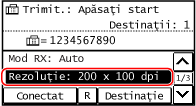 Introduceți numărul de fax cu ajutorul tastelor numerice sau selectați destinația înregistrată în agendă apăsând pe [Destinaţie].