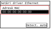 Puteți vizualiza adresa MAC setată la aparat atunci când aparatul este conectat la rețeaua LAN cu fir.