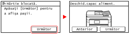 La eliminarea blocajelor de hârtie, nu opriți alimentarea.Datele în curs de imprimare sunt șterse la oprirea alimentării.