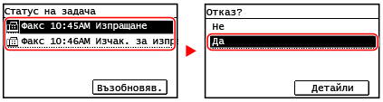 Можете да откажете изпращането на факс, като следвате инструкциите на екрана.