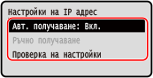 5 | Изберете [Ръчно получаване] и натиснете .Показва се екранът за въвеждане на IP адрес. |