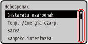 pantaila sakatutako norabidean korritzeko. Une horretan hautatutako elementua alderantzikatzen da.