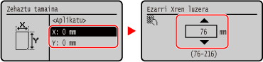 Sakatu [X] edo [Y] luzera sartzeko eta sakatu [Aplikatu].