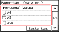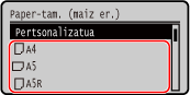 Ezohiko paper-neurriak erregistratuta daudenean eta maiz erabiltzen direnean, erregistratutako neurria paper-neurri gisa bistaratzen da. Estandarra ez den paper-tamaina (paper pertsonalizatua) erregistratzea