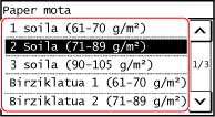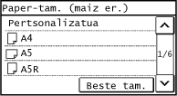 1. urratsean pantailan bistaratzen den paper-tamaina alda dezakezu. Erabili ez diren paper-tamainak ezkutatzea