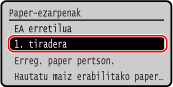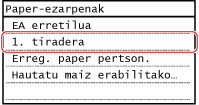 3. urratsean pantailan bistaratzen den paper-tamaina alda dezakezu. Erabili ez diren paper-tamainak ezkutatzea