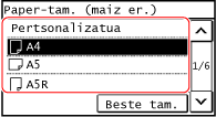 Ezohiko paper-neurriak erregistratuta daudenean eta maiz erabiltzen direnean, erregistratutako neurria paper-neurri gisa bistaratzen da. Estandarra ez den paper-tamaina (paper pertsonalizatua) erregistratzea