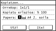 kontrol-panelean kopia-lanaren egoera ikusteko. Inprimatze-lanaren egoera eta erregistroa ikustea