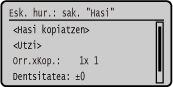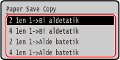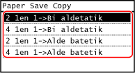 Original bat baino gehiago erabiltzean papera aurreztu nahi baduzu, erabili papera aurrezteko aukera. Aldi berean N 1ean eta bi aldeetatik kopiatu nahi baduzu, kontrol-paneleko [Etxea] pantailatik edo
