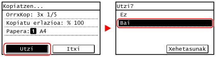 kontrol-panelean eta, gero, sakatu [<Bai>] eta sakatu
