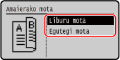 [Jatorr./Amaierako mota] pantaila agertzen bada.