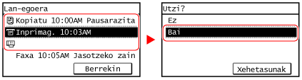 Lanen zerrendaren pantaila bistaratzen bada, hautatu bertan behera utzi nahi duzun lana eta sakatu [Bai] gero,