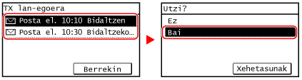 Lanen zerrendaren pantaila bistaratzen bada, hautatu bertan behera utzi nahi duzun lana eta sakatu [Bai].