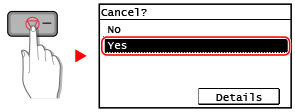 If the job list screen is displayed, select the job to cancel, and select [<Yes>] and press