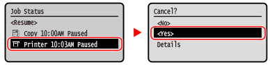 If the job list screen is displayed, select the job to cancel, and press [Yes].