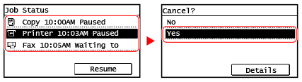 If the job list screen is displayed, select the job to cancel, and select [Yes],press