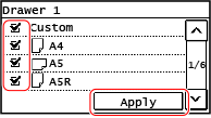 Clear the checkboxes of the paper sizes to hide, and press [Apply].