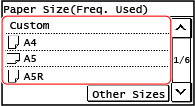 You can scroll the screen to view paper sizes (such as envelopes) not displayed on the screen.